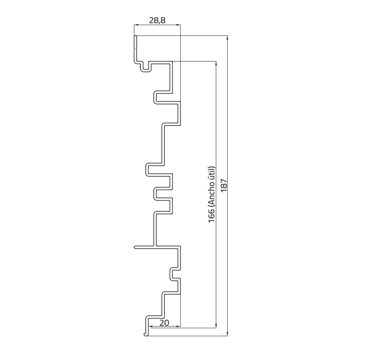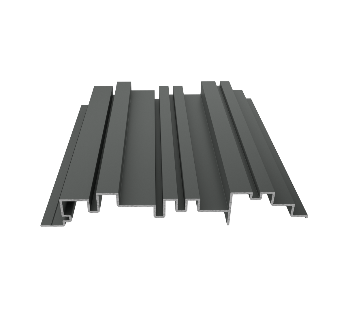 Irregular ribbed aluminium slat compatible with different profiles, thus enabling interesting combinations of different reliefs to be formed, for use in architecture, interior and exterior cladding and ventilated façades.