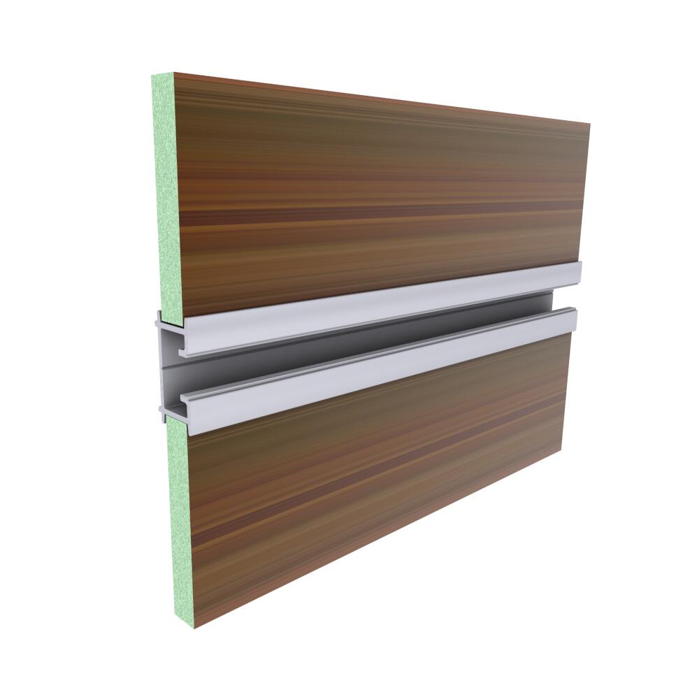 Special Aluskit® aluminium profile that allows a channel to be inserted between panels for various functions, such as incorporating LED lighting or serving as a support for shelves or hanging accessories.