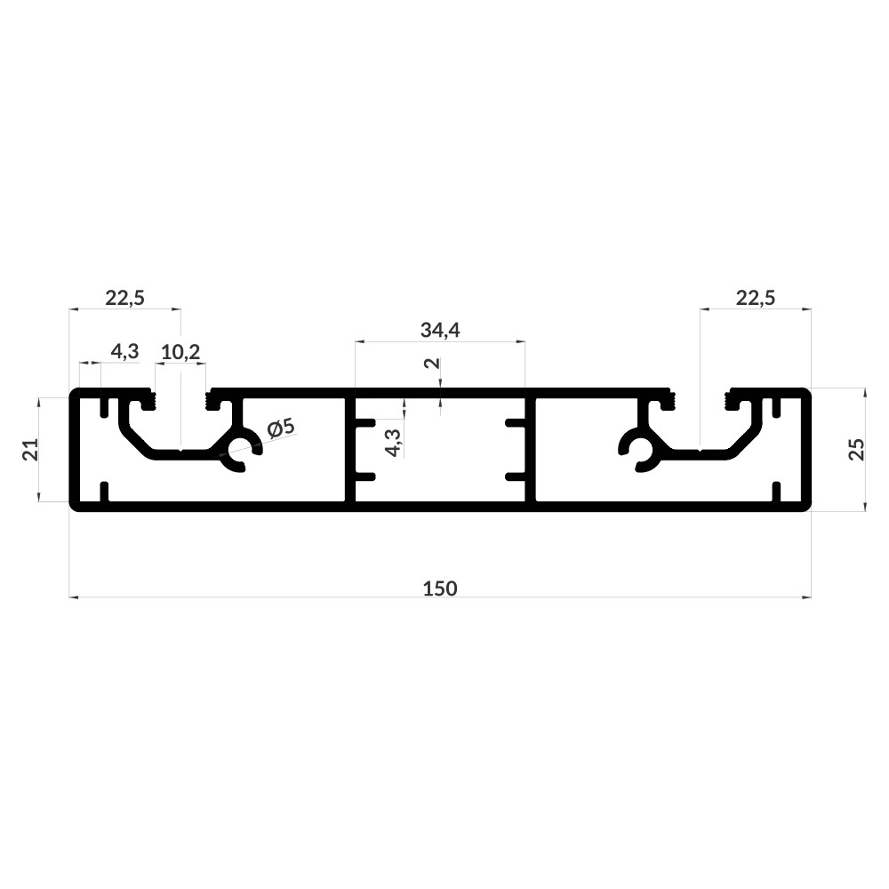 Home > Products > Aluskit® system > Aluskit® modular profiles > Aluskit® 150×25 2-channel modular profile 150×25
