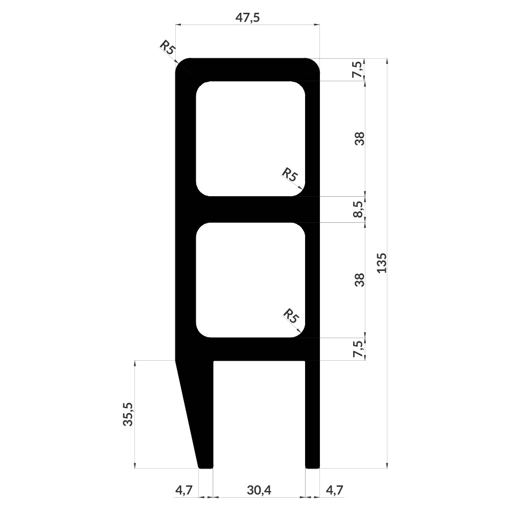 Home > Products > Special profiles > Transport profiles > 47,5 mm top rail