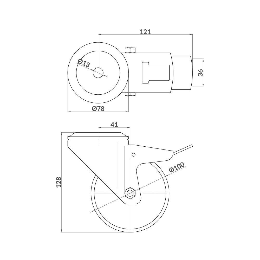 Home > Products > Aluskit® system > Aluskit® accessories > White polyamide wheel Ø100×36 Swivel with brake S45
