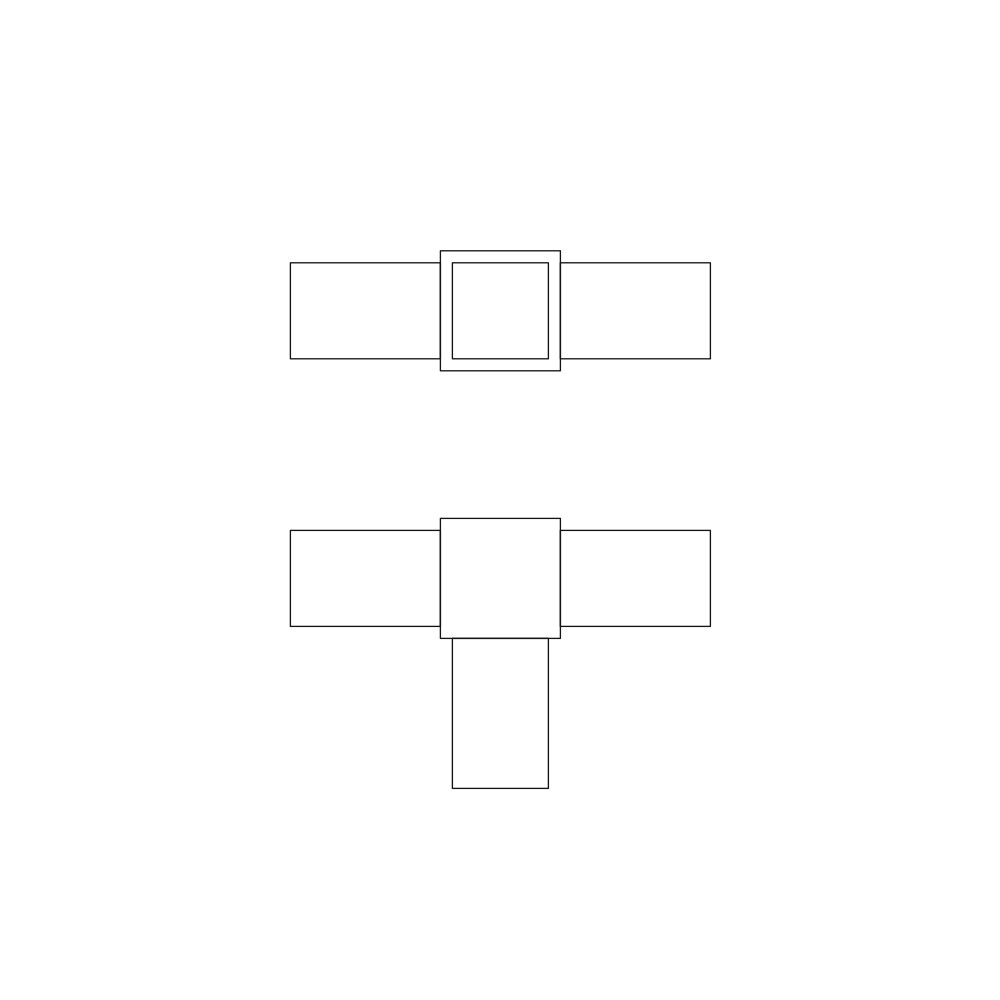 Home > Products > Aluminium fittings > Induskit fittings > Induskit fittings for round tubes > Solid pipe fitting for 20x20x2 pipe, 3 outlets at 90°, flat