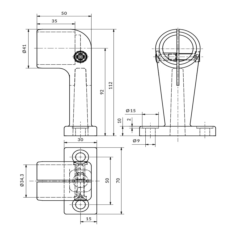 Fitting for fixing a tube parallel to the surface. It is joined by pressing the two parts of the fitting together. No machining of the tubes is required.