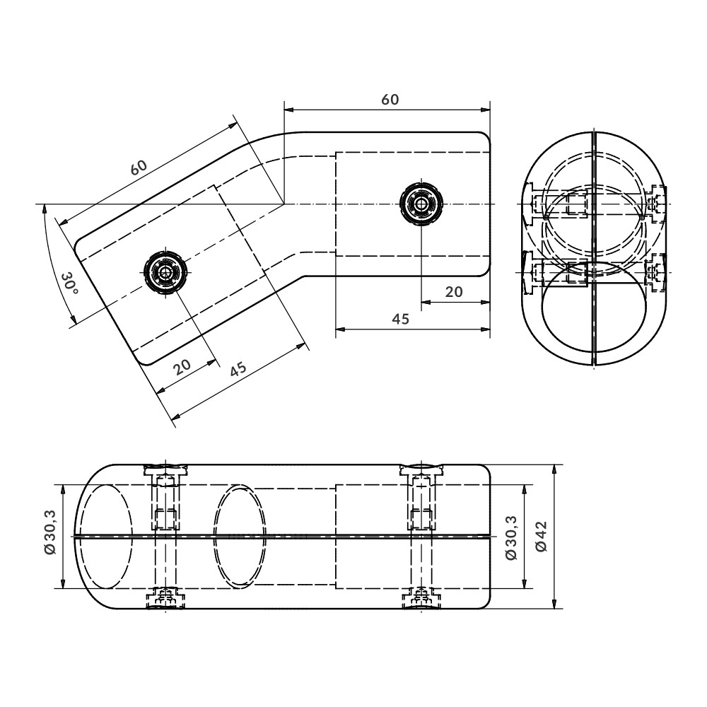 Home > Products > Aluminium fittings > Aluskit® fittings > 30º-150º elbow fitting L60 Ø30