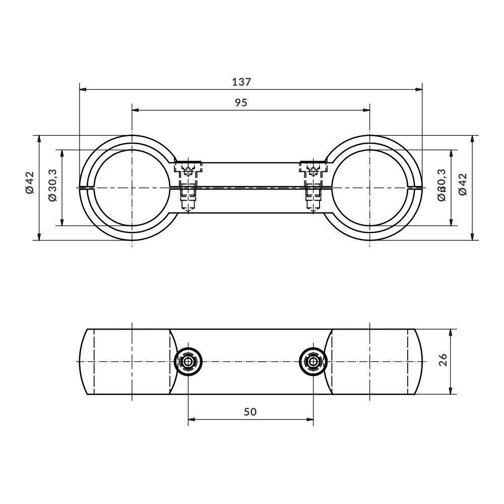 Home > Products > Aluminium fittings > Aluskit® fittings > Intermediate support fitting L137 Ø30