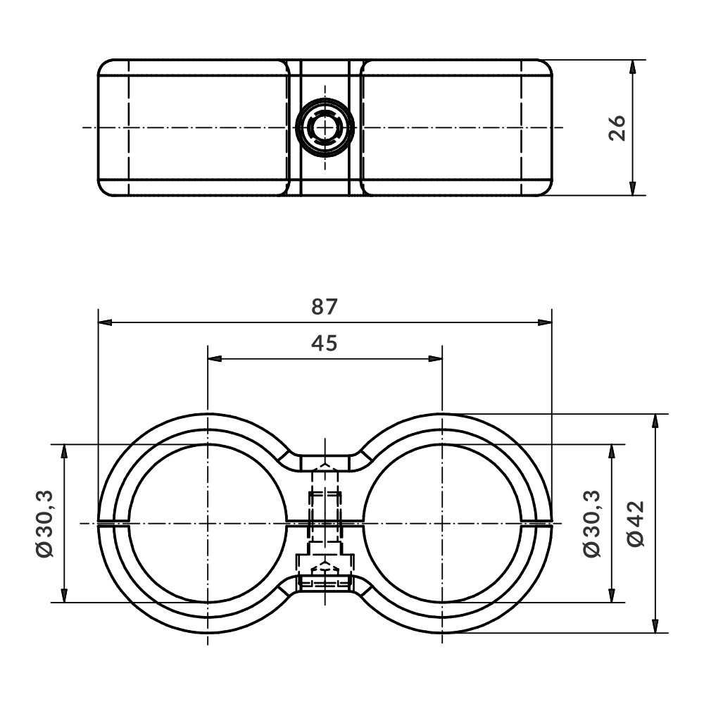 Home > Products > Aluminium fittings > Aluskit® fittings > Double parallel through-hole fitting Ø30