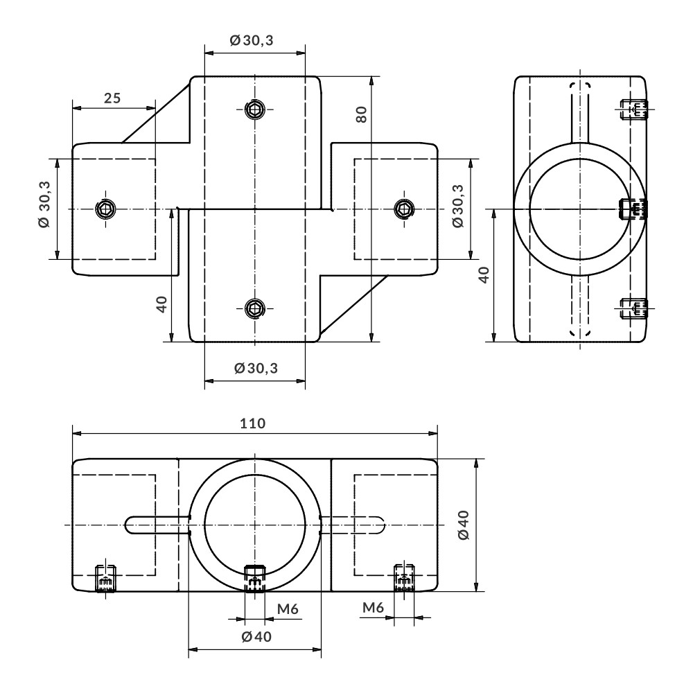 Home > Products > Aluminium fittings > Aluskit® fittings > Compass fitting with 4 horizontal/vertical outlets, continuous Ø30