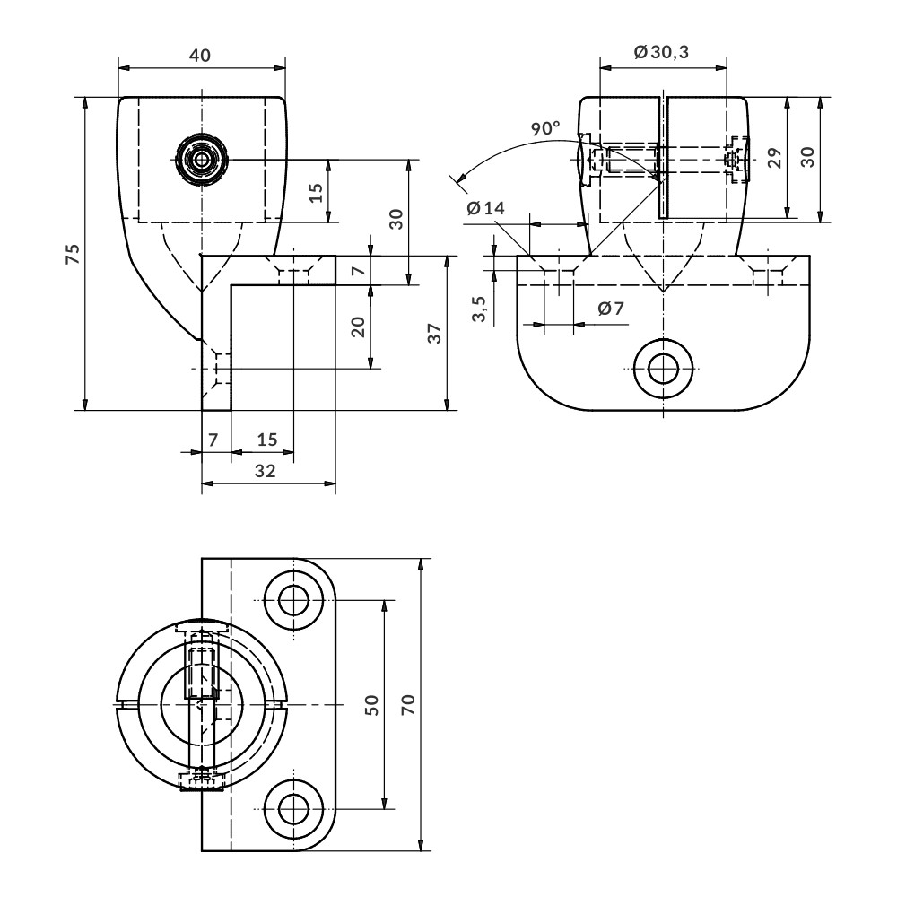 Home > Products > Aluminium fittings > Aluskit® fittings > Angular side terminal fitting Ø30
