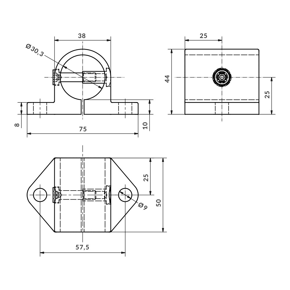 Home > Products > Aluminium fittings > Aluskit® fittings > Side support base fitting, 2 fasteners Ø30