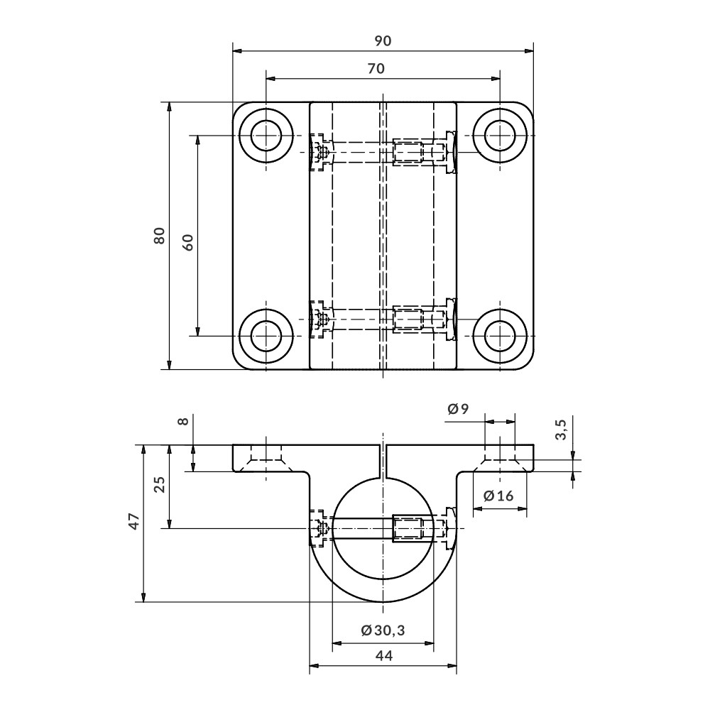 Home > Products > Aluminium fittings > Aluskit® fittings > Side support base fitting with rear opening H80 Ø30