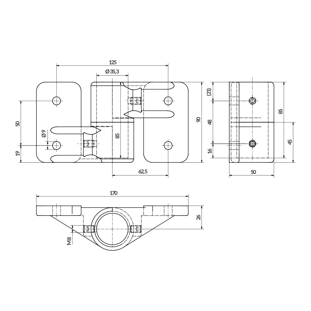 Home > Products > Aluminium fittings > Aluskit® fittings > Angle bracket hinge fitting Ø35