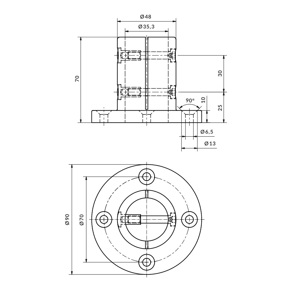 Home > Products > Aluminium fittings > Aluskit® fittings > Side support base fitting 4 screws Ø35