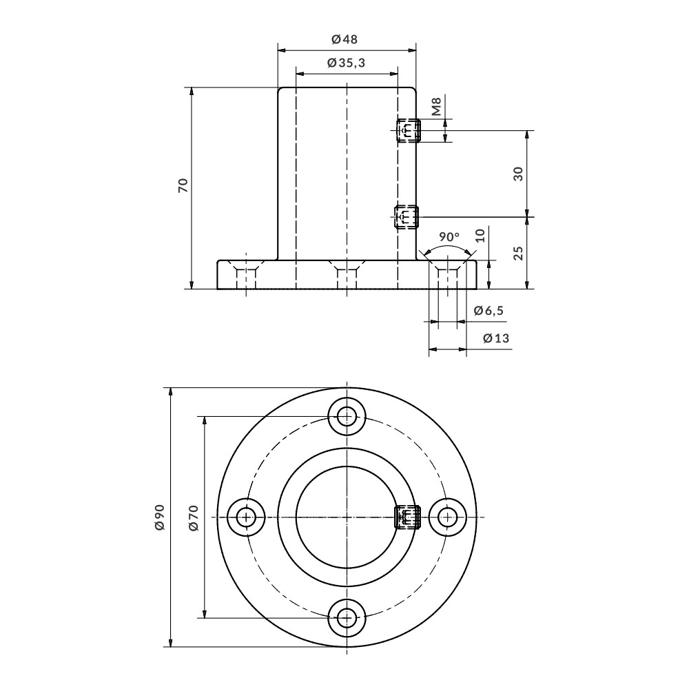 Home > Products > Aluminium fittings > Aluskit® fittings > Vertical support base fitting 4 fasteners Ø35
