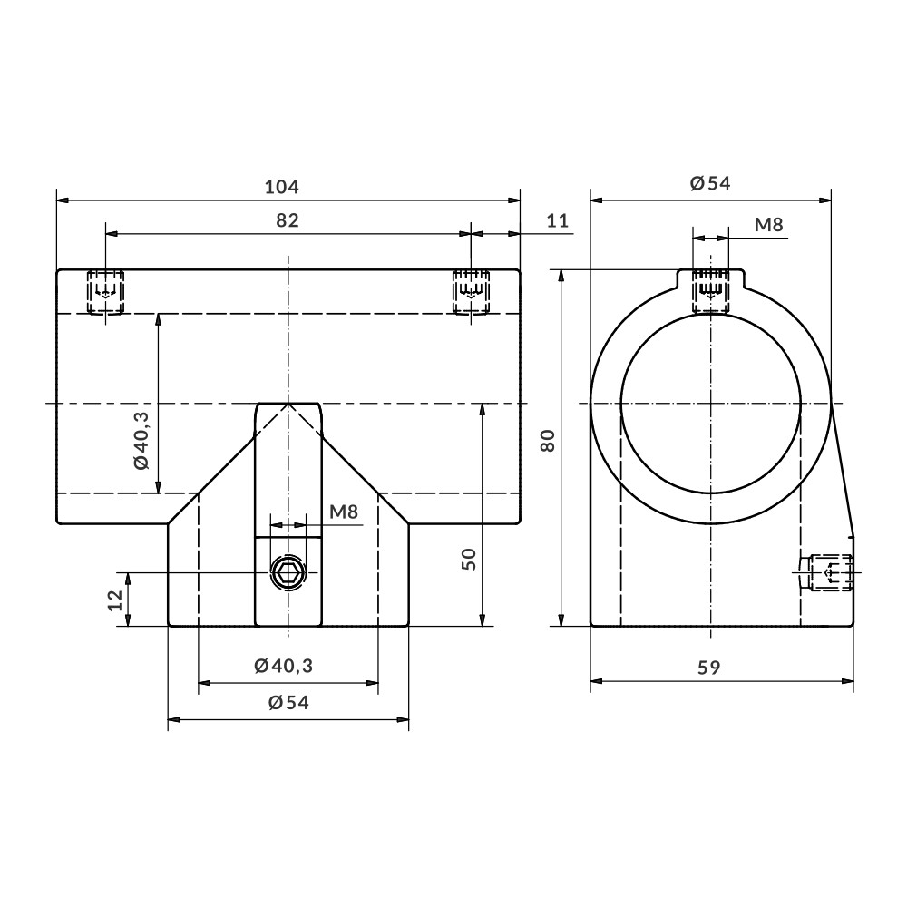Home > Products > Aluminium fittings > Aluskit® fittings > T-fitting 70 mm Ø40