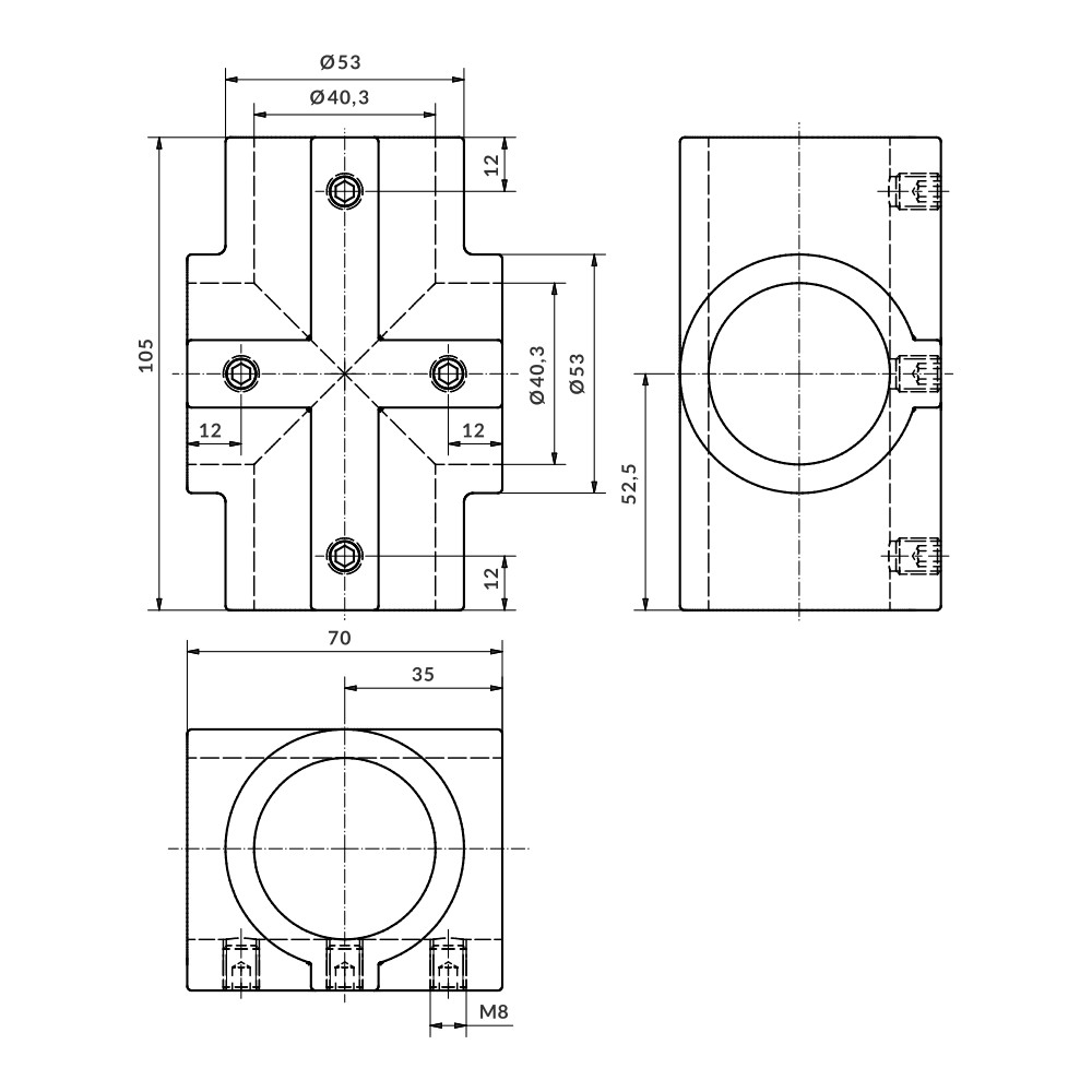 Home > Products > Aluminium fittings > Aluskit® fittings > Cross fitting with captive fasteners Ø40