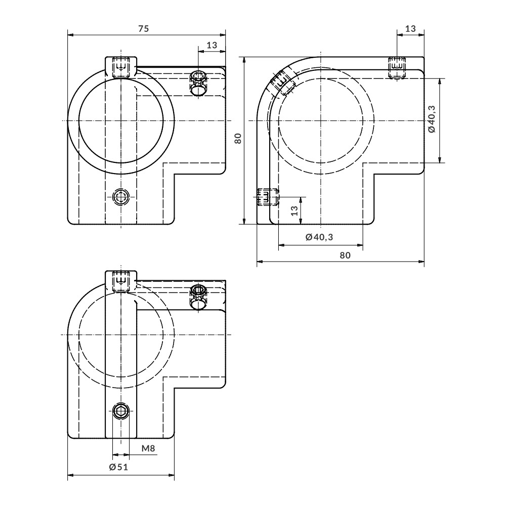 Home > Products > Aluminium fittings > Aluskit® fittings > 90º corner elbow Ø40