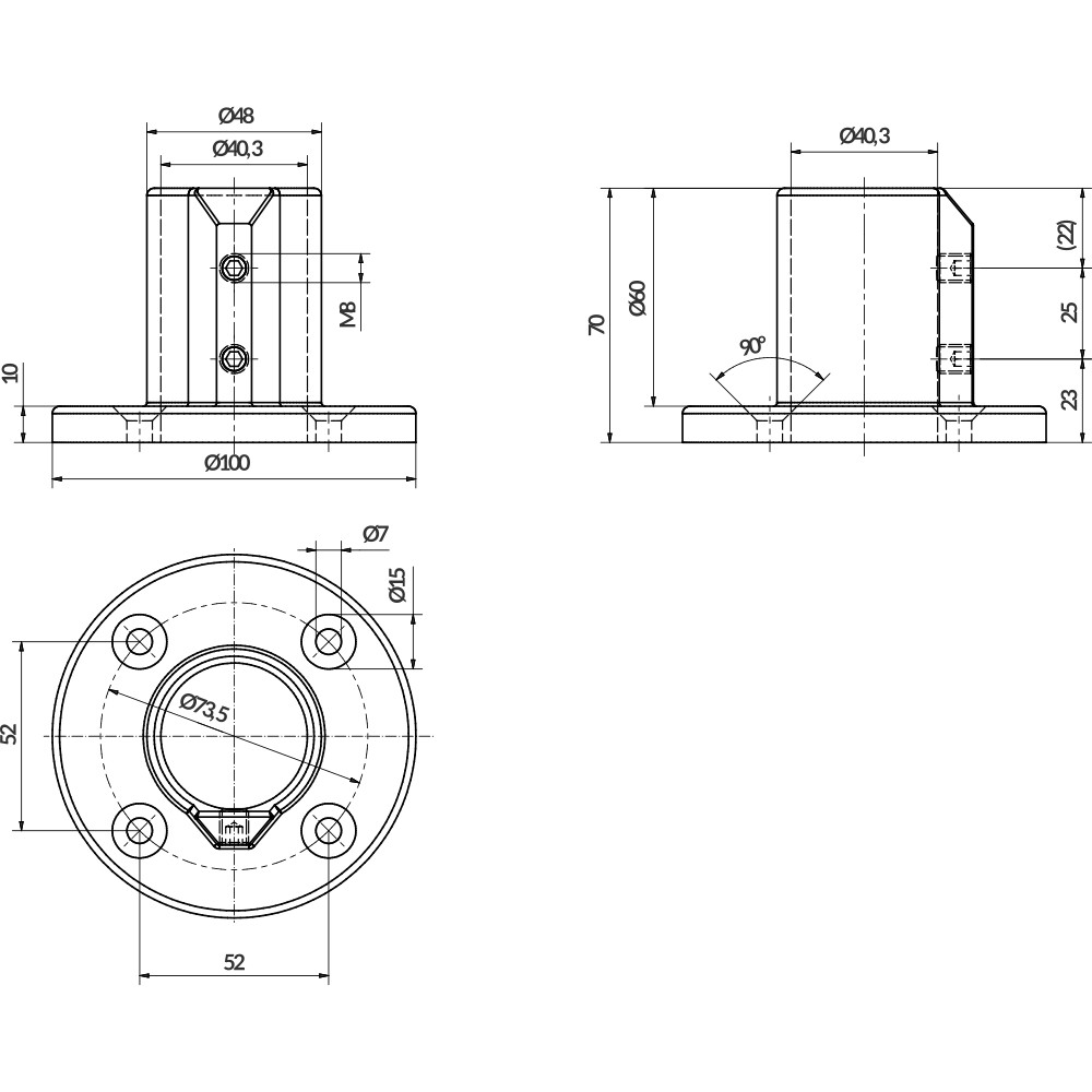 Home > Products > Aluminium fittings > Aluskit® fittings > Round vertical support base with captive screws Ø40