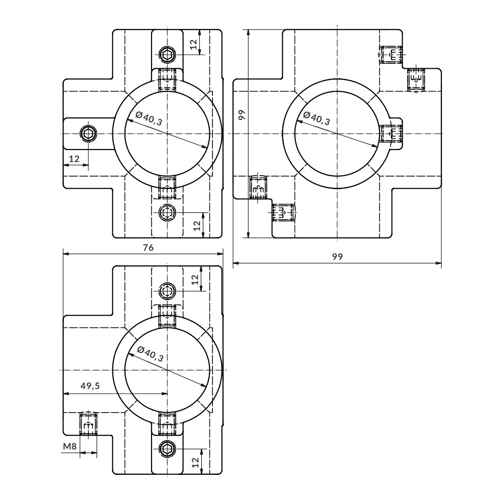 Home > Products > Aluminium fittings > Aluskit® fittings > Vertical-horizontal multiple union fitting with 5 outlets Ø40