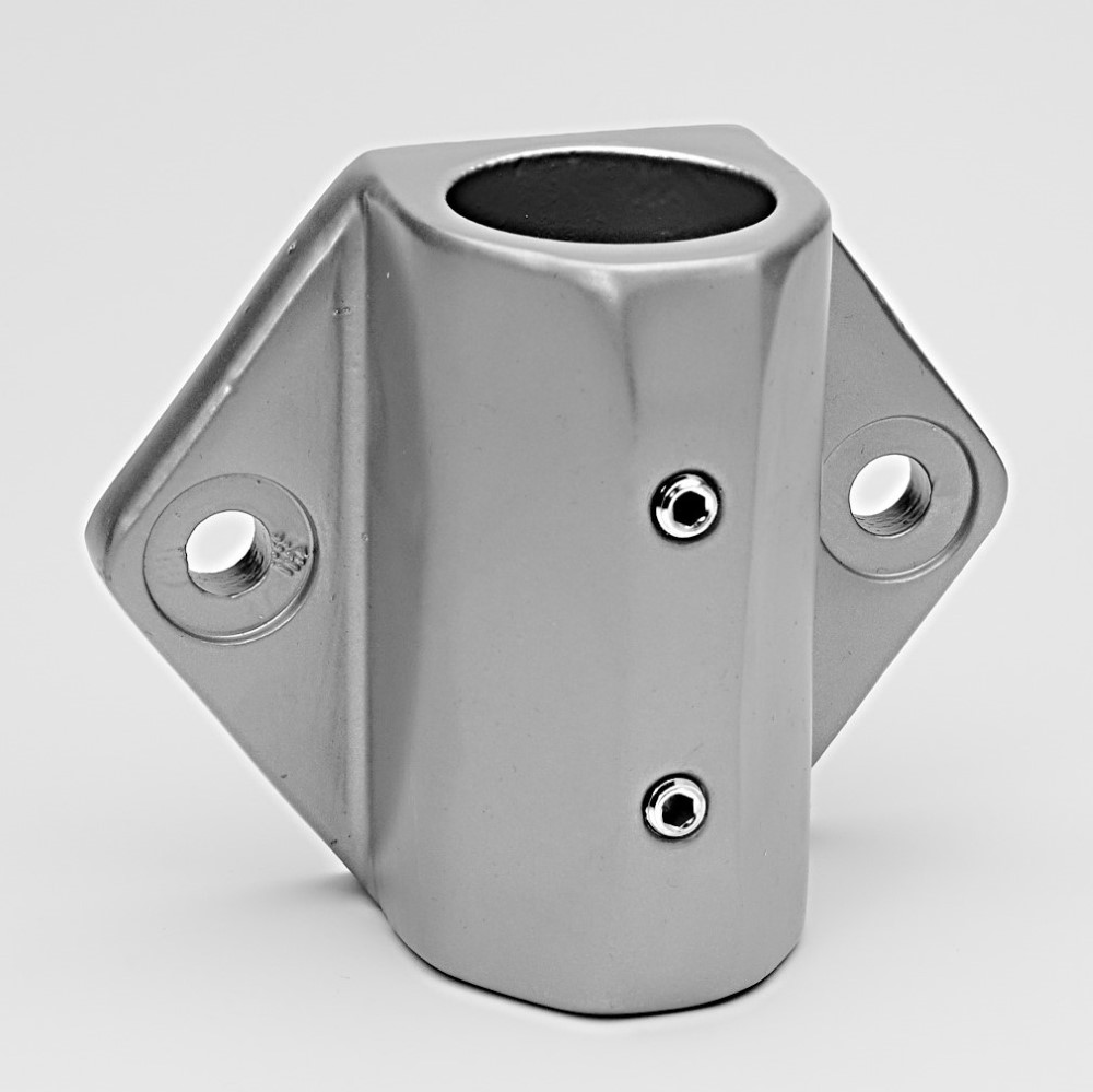 Fixing base for mounting an end tube on a vertical surface. The tube is secured by pressure from the fasteners. No machining of the tubes is required.
