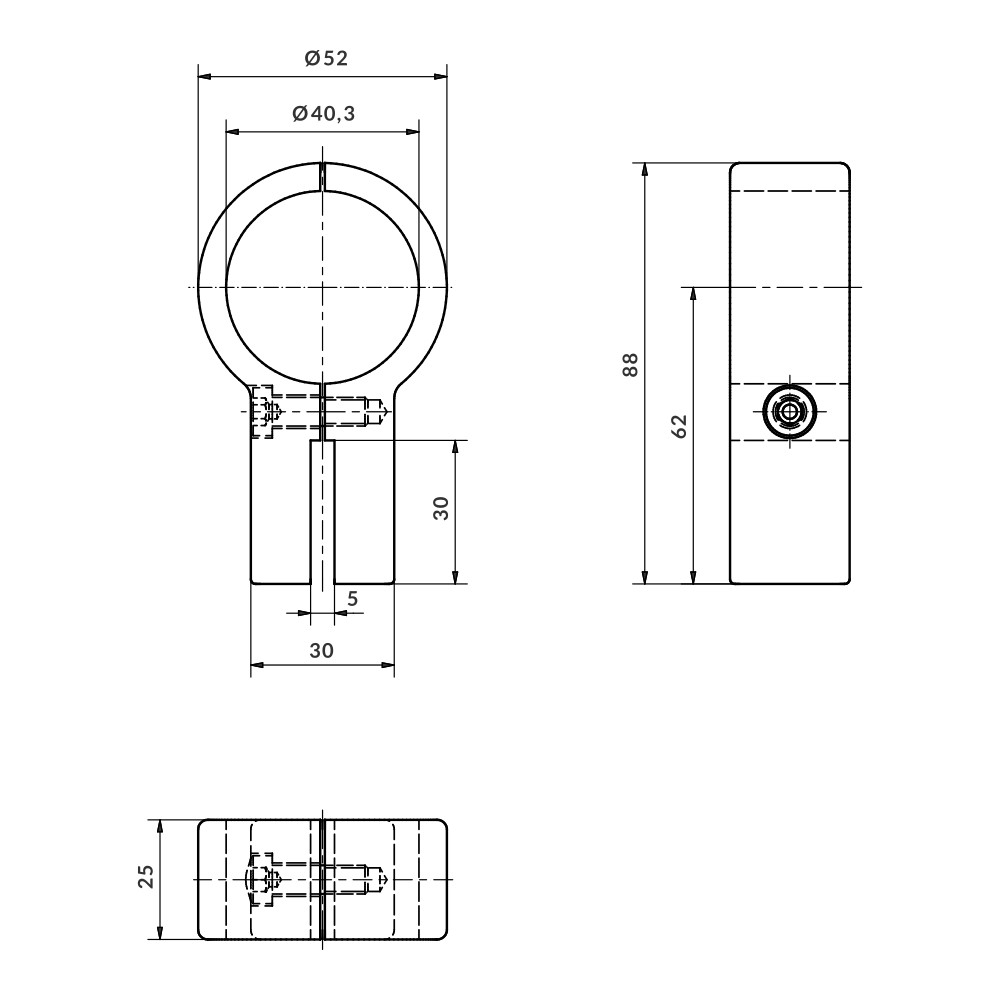 Home > Products > Aluminium fittings > Aluskit® fittings > Side support bracket for glass Ø40