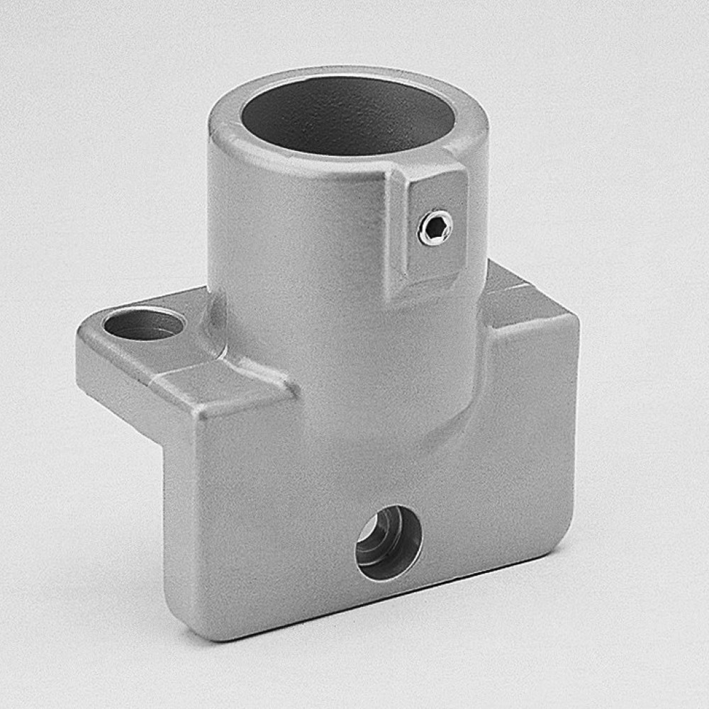 Anchor fixing base for attachment to a surface at a 90º angle. They are joined by pressure from the fastener. No machining of the tube is required.