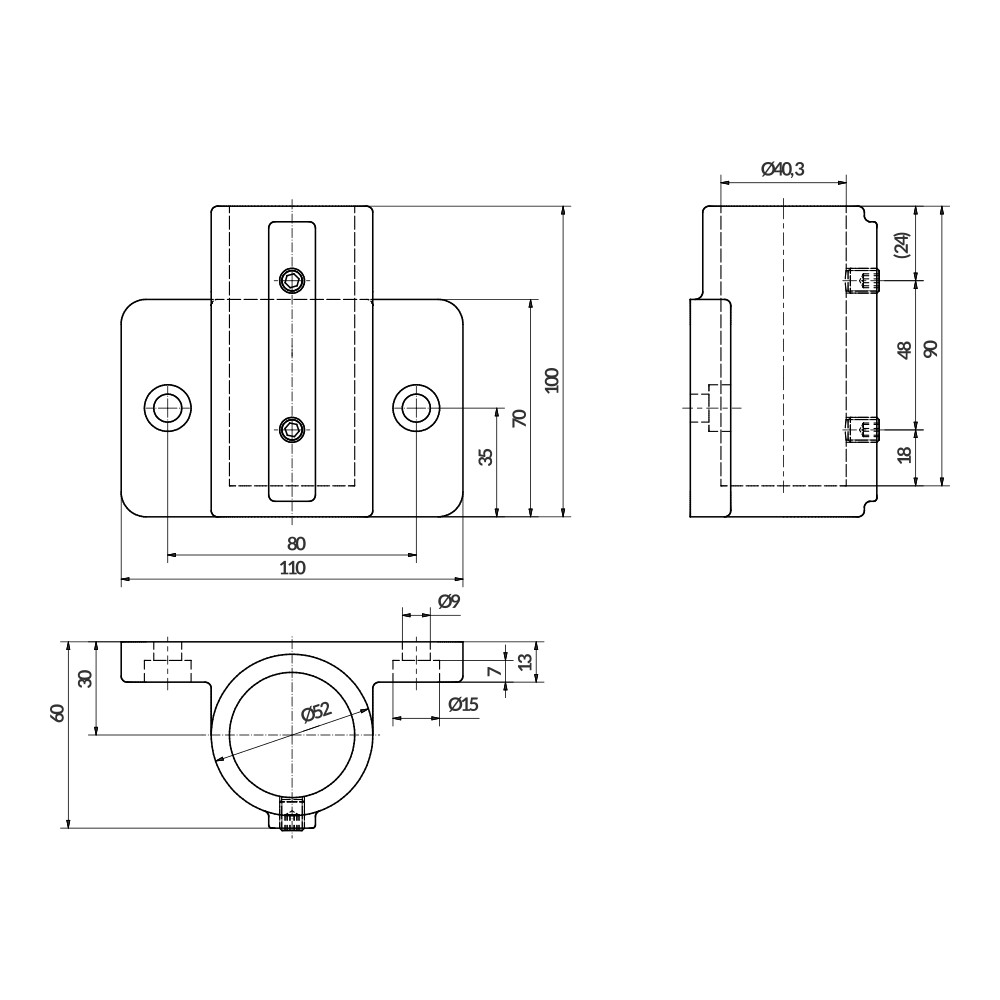 Home > Products > Aluminium fittings > Aluskit® fittings > Terminal side support base 70/100 Ø40