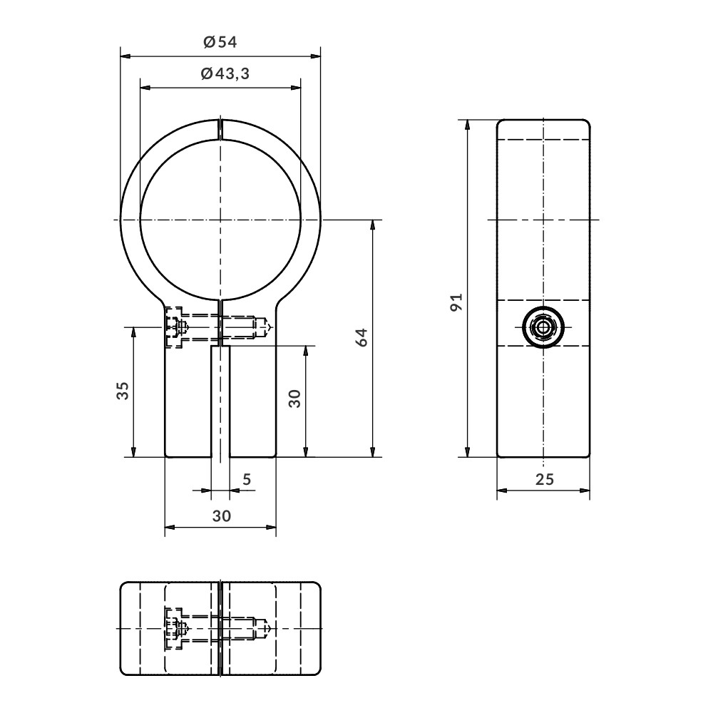 Home > Products > Aluminium fittings > Aluskit® fittings > Side glass support bracket Ø43