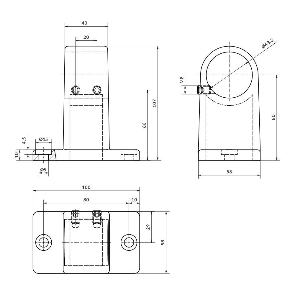 Home > Products > Aluminium fittings > Aluskit® fittings > H80 Ø43 through-hole bracket