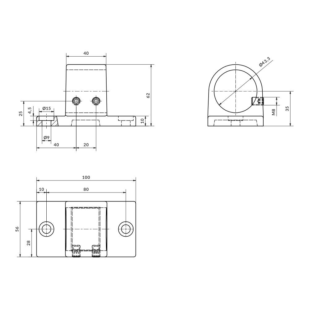 Home > Products > Aluminium fittings > Aluskit® fittings > H35 Ø43 through bracket