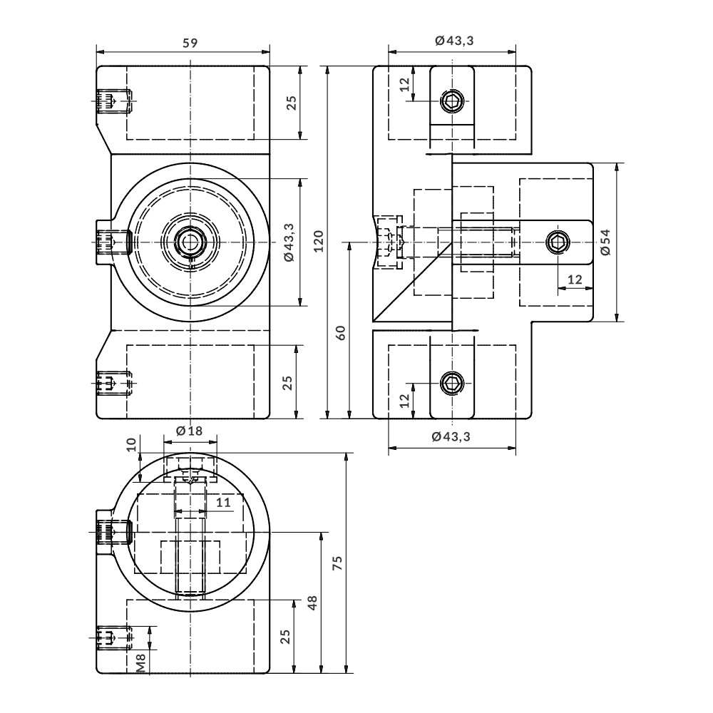 Home > Products > Aluminium fittings > Aluskit® fittings > Adjustable T-fitting Ø43