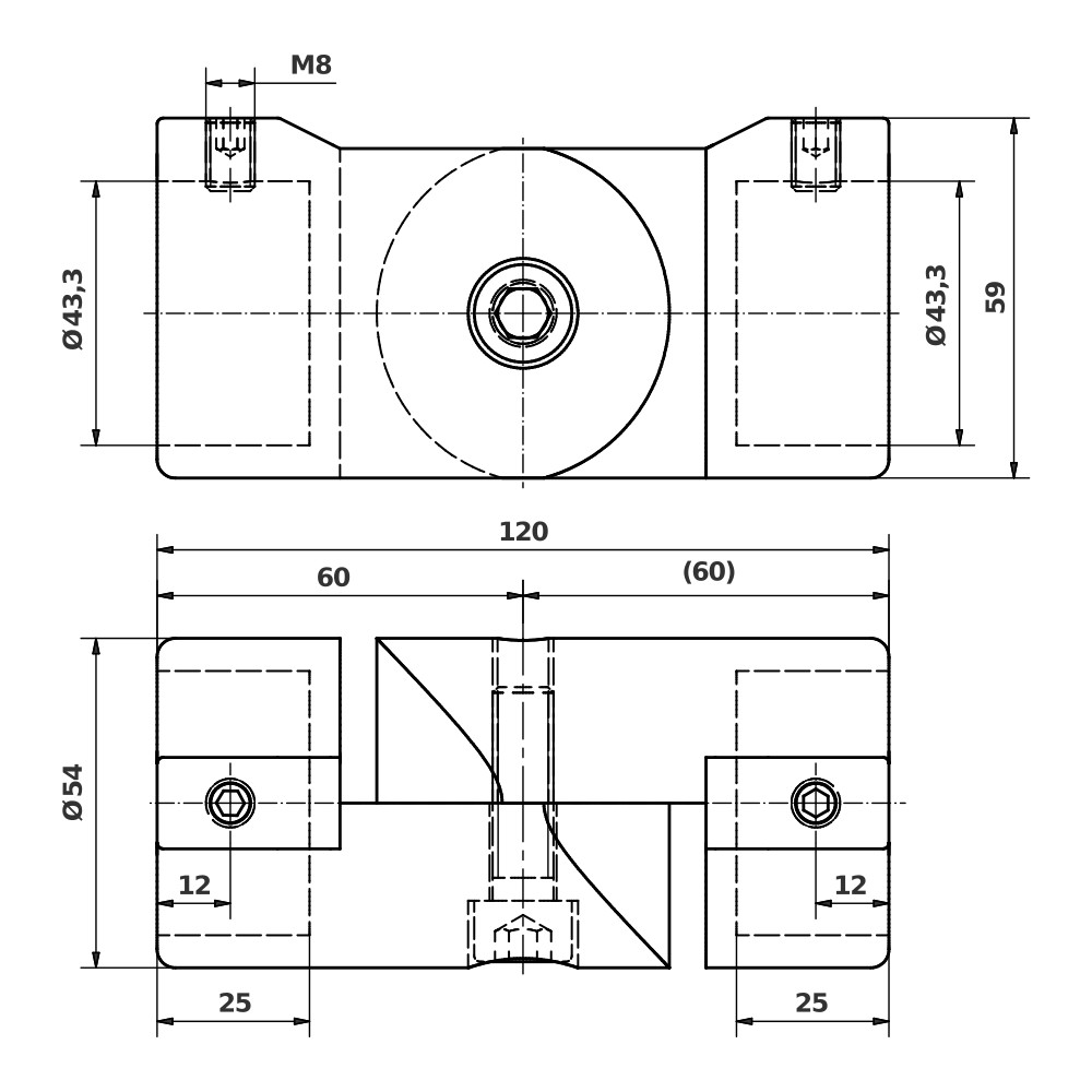 Fitting for connecting two end tubes at a variable angle. They are secured by pressure exerted by captive fasteners. No machining of the tubes is required.