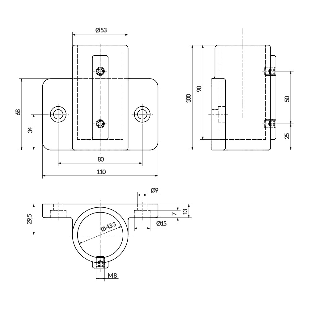 Home > Products > Aluminium fittings > Aluskit® fittings > Side bracket 70/110 mm Ø43