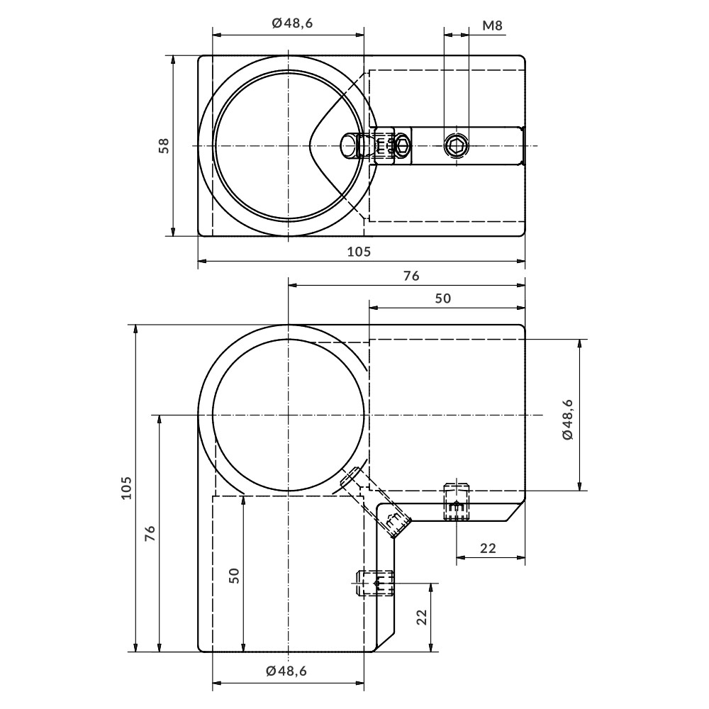 Home > Products > Aluminium fittings > Aluskit® fittings > 90º intermediate fitting with 4 outlets Ø48.3