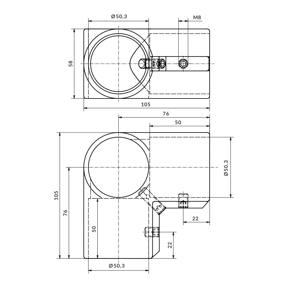 Home > Products > Aluminium fittings > Aluskit® fittings > 90º Ø50 cross corner fitting