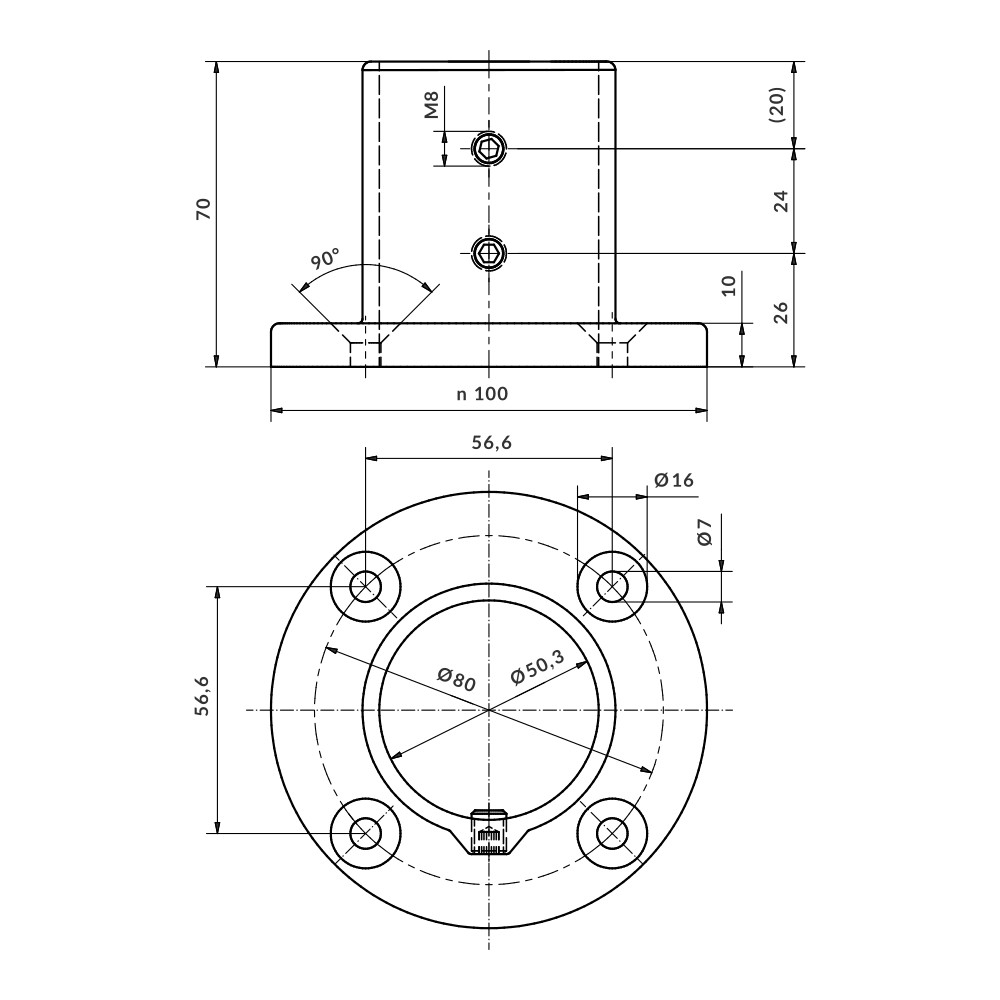 Home > Products > Aluminium fittings > Aluskit® fittings > Vertical base 4 holes Ø50