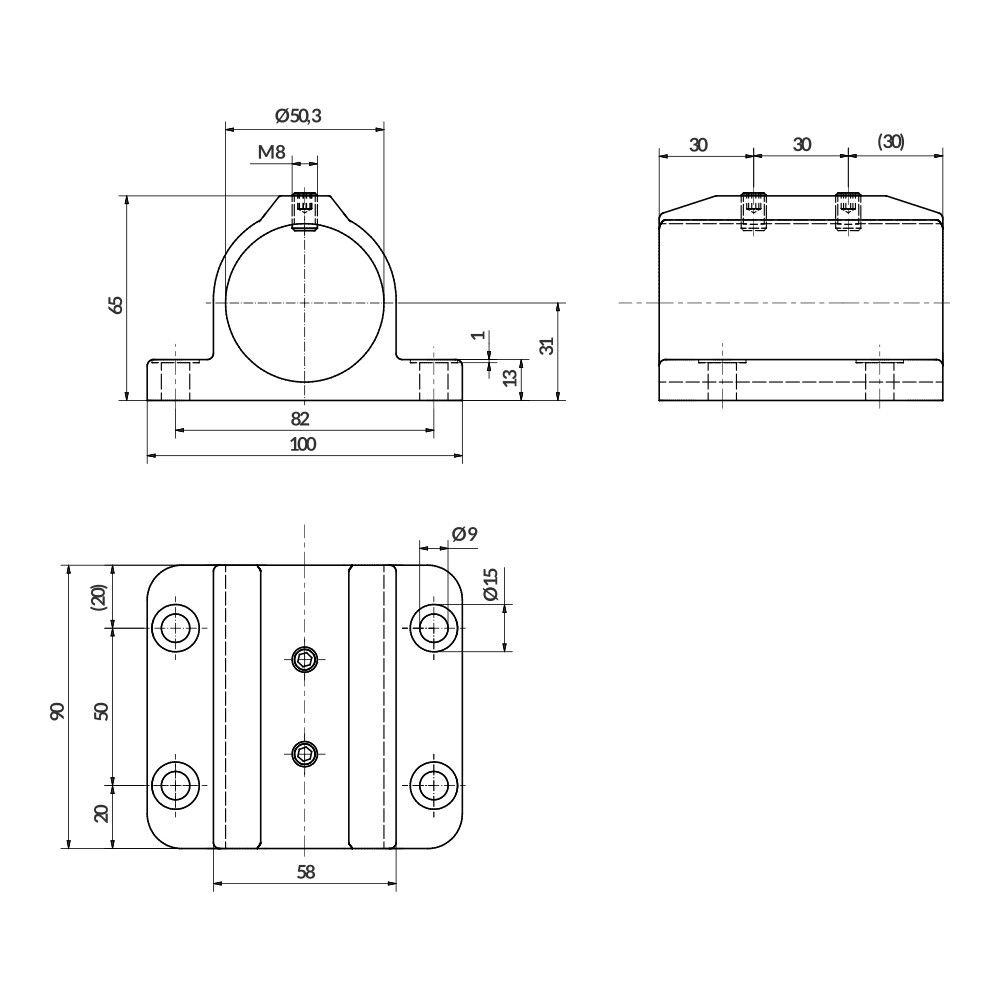 Home > Products > Aluminium fittings > Aluskit® fittings > Through side support base Ø50