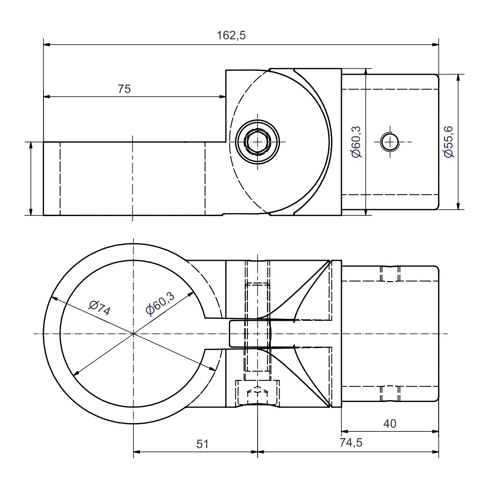 Home > Products > Aluminium fittings > Aluskit® fittings > Through fitting with variable angle Ø60-Ø60×2