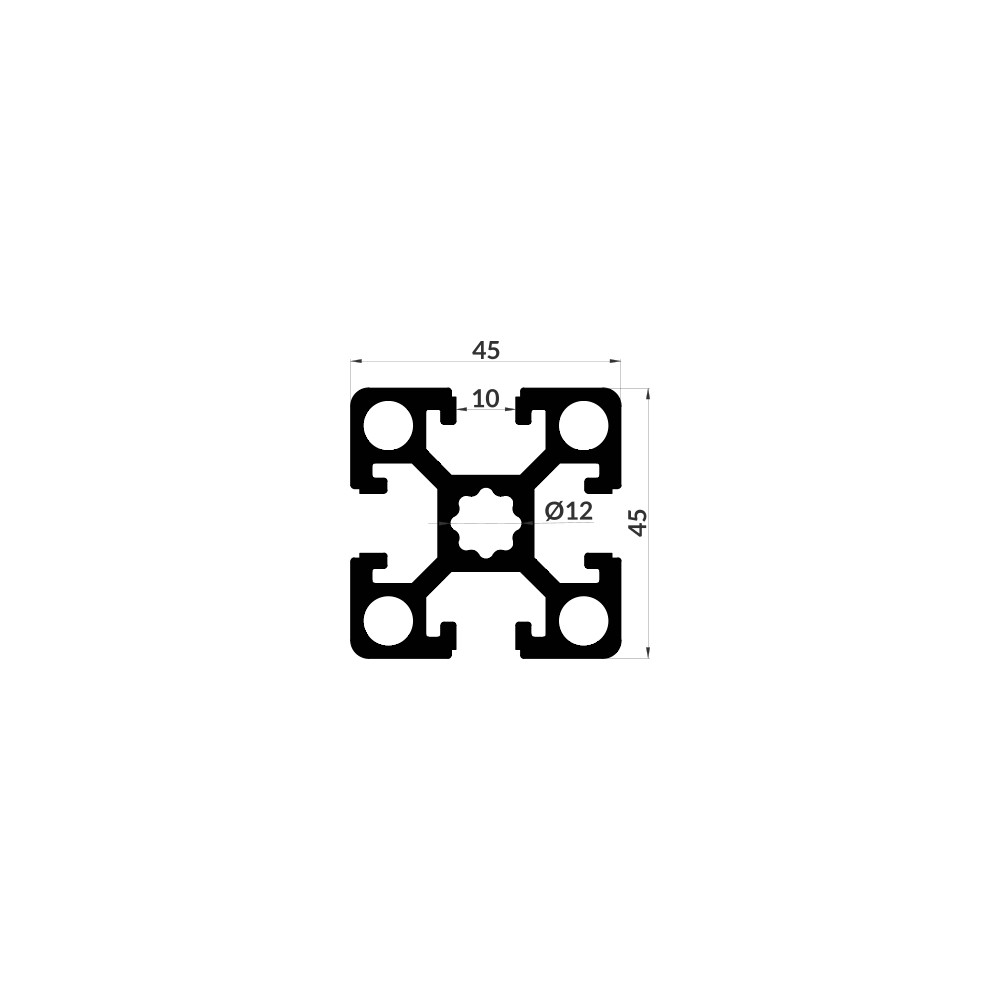 Profilé modulaire en aluminium Aluskit® de la série 45. Profilé de référence pour la réalisation de tous types de structures. Compatible avec une large gamme d’accessoires pour tous types d’assemblages et de fonctionnalités.