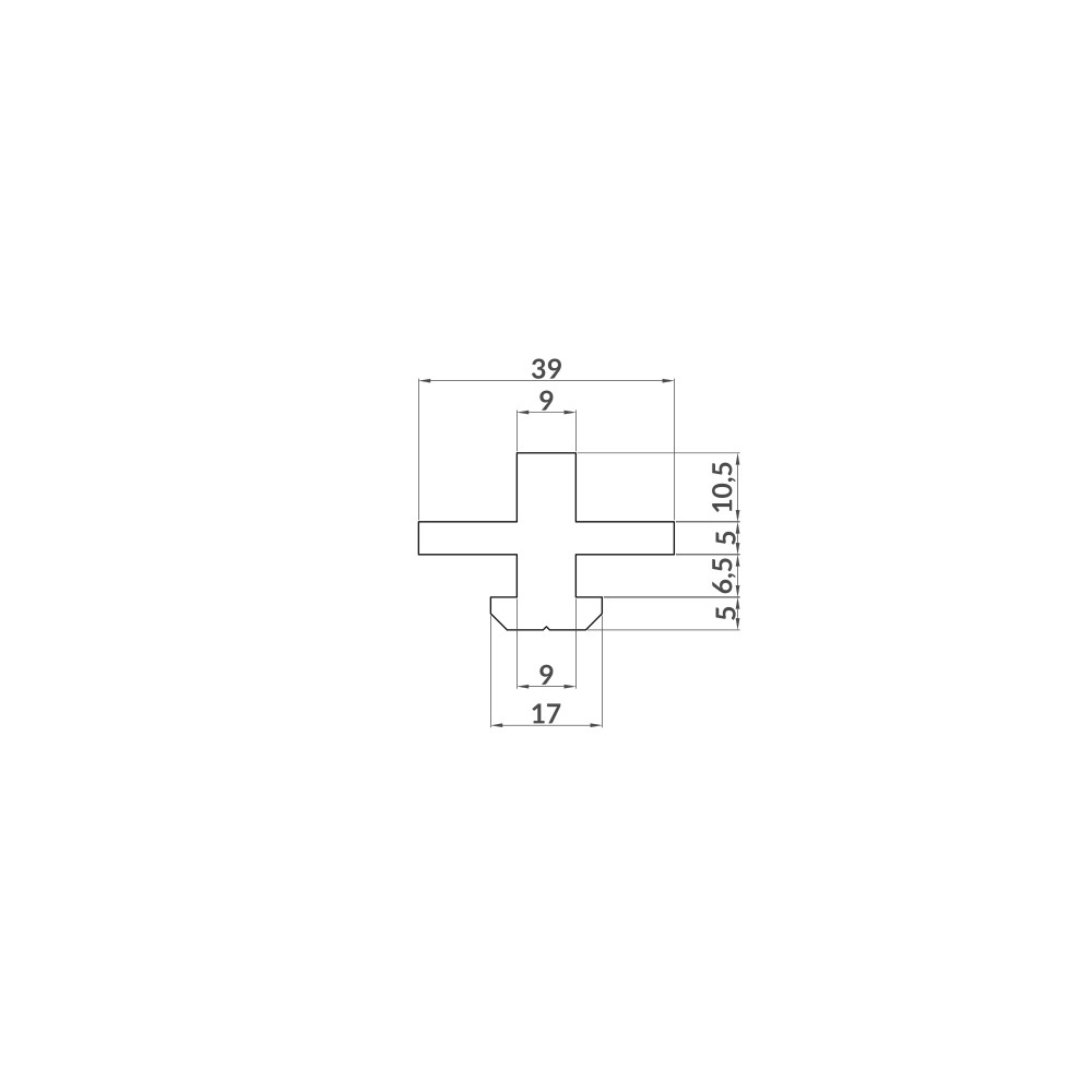 Profilé coulissant servant de guide d’appui pour un autre profilé Aluskit® de 10 mm. Compatible avec les séries 40 et 45.