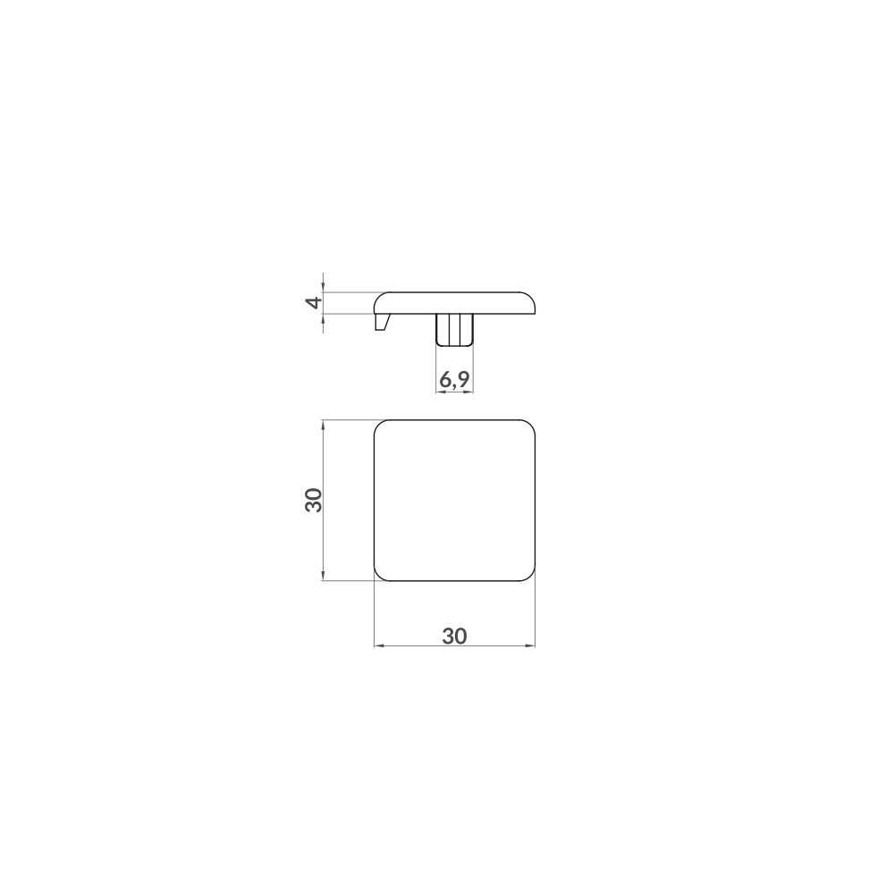 Cache en plastique pour finir les sections de profilé là où cela est nécessaire. Compatible avec les profilés modulaires en aluminium du système Aluskit® 30×30 carrés.