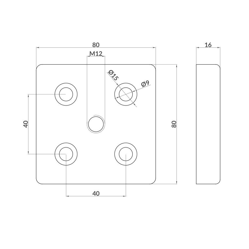 Plaque de base compatible avec les profilés modulaires en aluminium Aluskit® 80×80. Permet d’installer des pieds ou des roulettes centrés sur la section du profilé. Ne comprend pas la visserie, qui doit être sélectionnée en fonction du montage à réaliser.