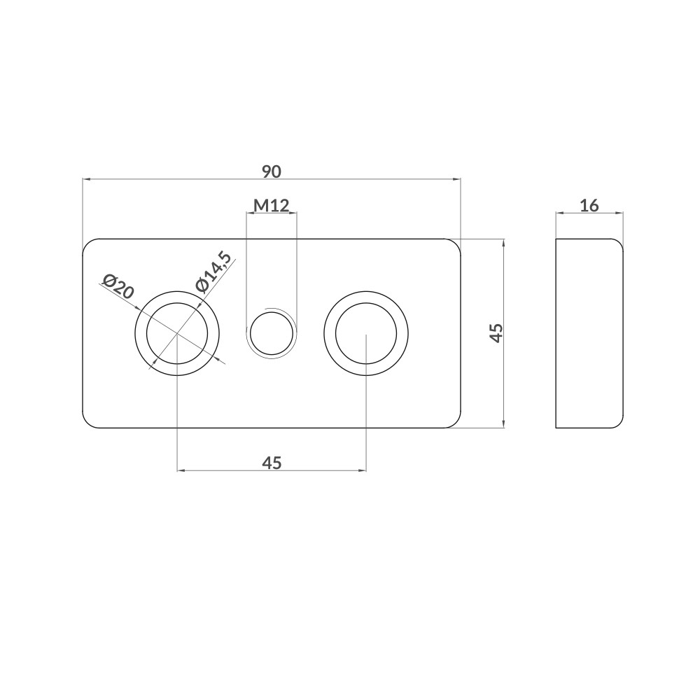 Plaque de base Aluskit® pour profilé 90×45 fileté M12 – Noir