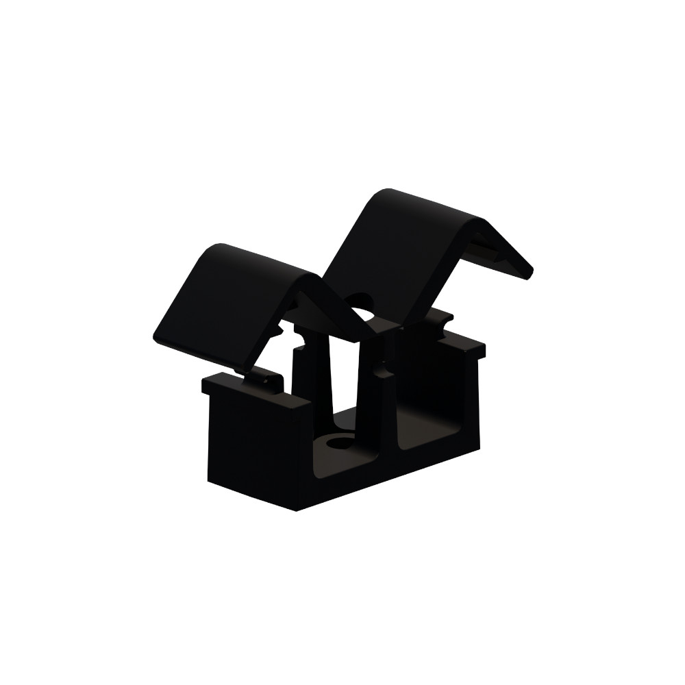 Fixation de câbles à visser, compatible avec tous les profilés en aluminium du système Aluskit®. Permet de guider les câbles en les insérant dans leur logement clipsé.