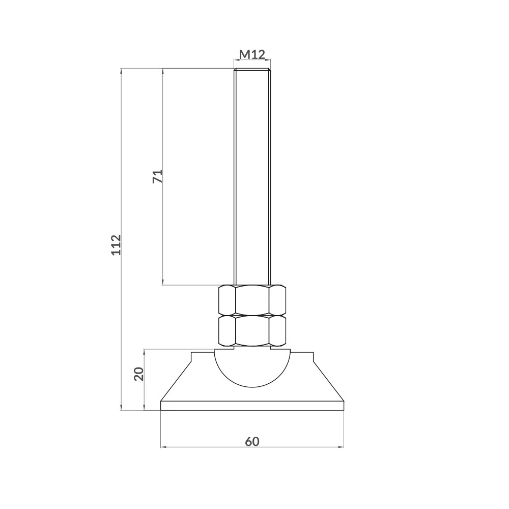 Pied réglable en polyamide Ø60 M12x100 C/R