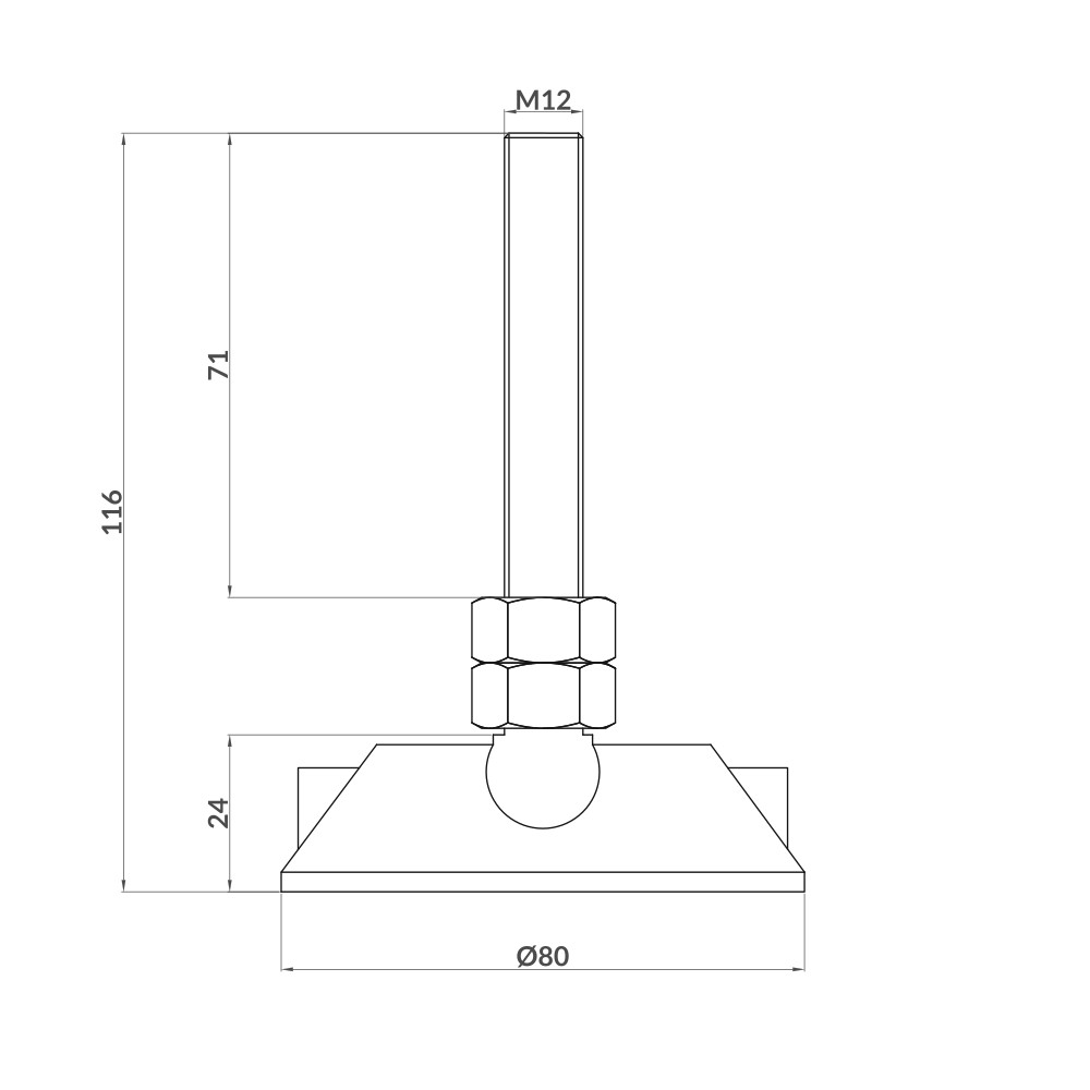 Pied réglable en polyamide Ø80 M12x70 C/R
