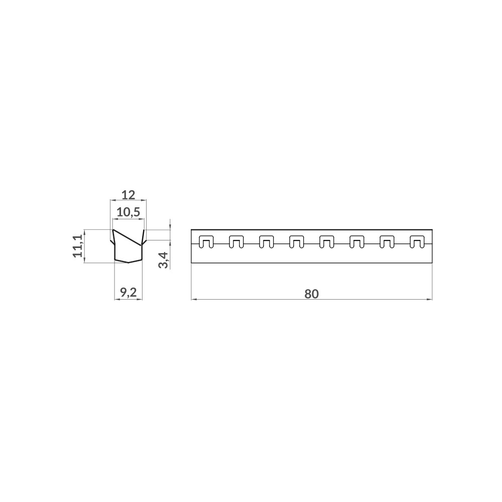 Agrafe métallique qui s’insère dans le canal des profilés et maintient le panneau par pression. Convient pour des panneaux de 2 à 9 mm d’épaisseur.