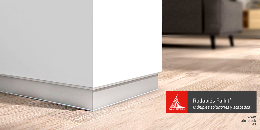 Rodapiés Falkit, son la alternativa perfecta a los tradicionales rodapiés de madera. Compuestos en su totalidad de aluminio, esta solución es perfecta para dotar a la estancia de un aire moderno y actual. Gracias a los diferentes modelos y acabados, se obtienen posibilidades ilimitadas de diseño.