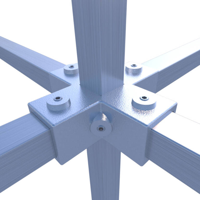Racores especiais para estruturas quadradas, ideais para sistemas de armazenamento, proteções, mobiliário e montagem industrial. Fabricados em alumínio de alta qualidade para máxima durabilidade.