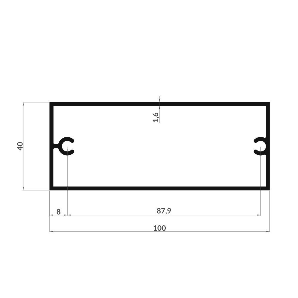 Início > Produtos > Perfis especiais > Perfis para parafusos > Tubo retangular com porta-parafusos 100×40
