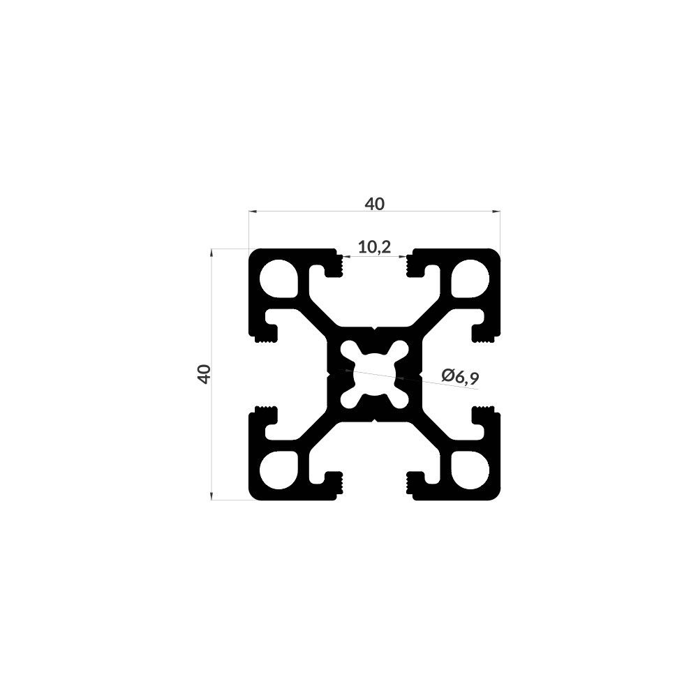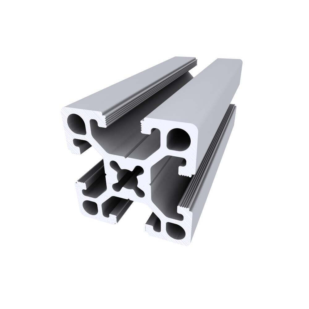 Perfil modular de alumínio Aluskit® da Série 40. Perfil de referência para a execução de todo o tipo de estruturas. Compatível com uma vasta gama de acessórios para todo o tipo de ligações e funcionalidades.
